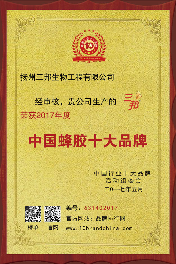 • 中國(guó)蜂產(chǎn)品消費(fèi)者滿意十佳產(chǎn)品